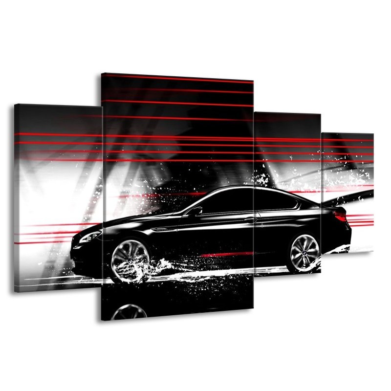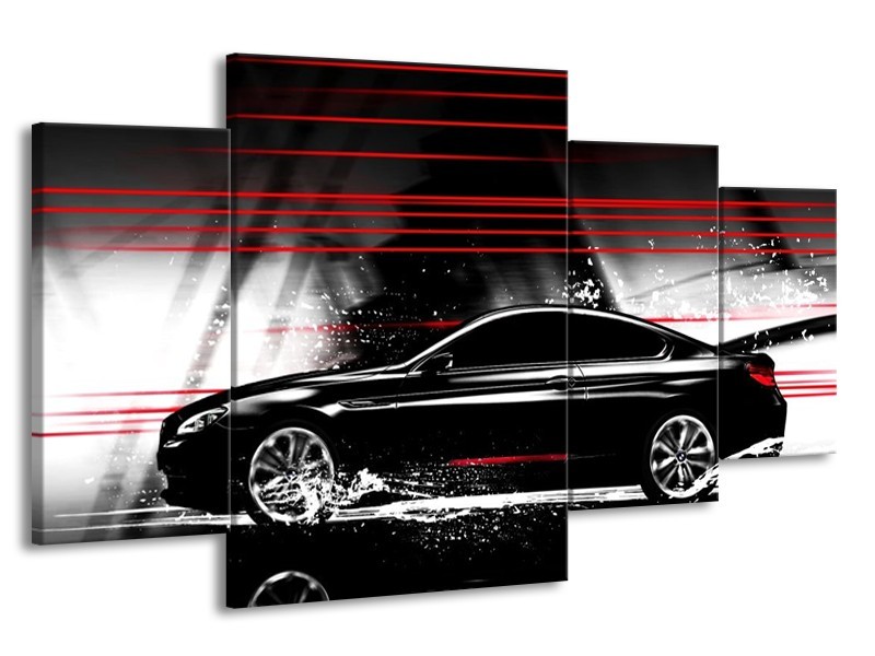 Glas schilderij Auto | Zwart, Rood, Grijs | 160x90cm 4Luik