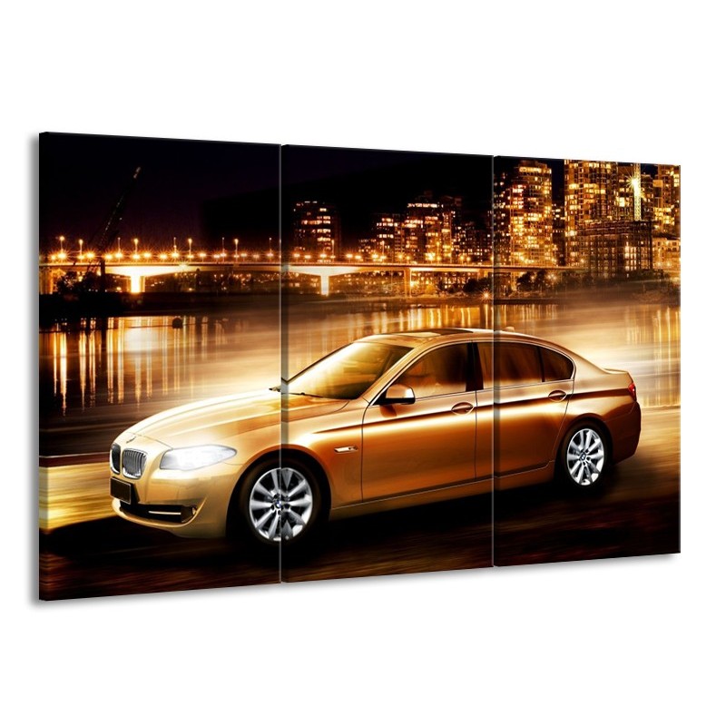 Canvas schilderij BMW | Geel, Goud, Zwart | 165x100cm 3Luik