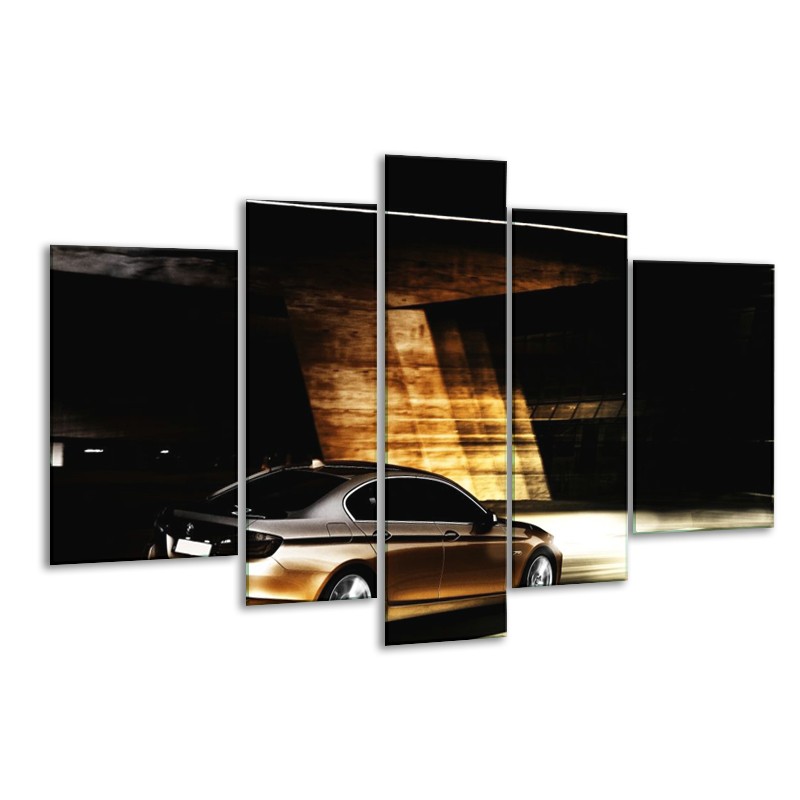 Glas schilderij BMW | Zwart, Goud, Wit | 170x100cm 5Luik