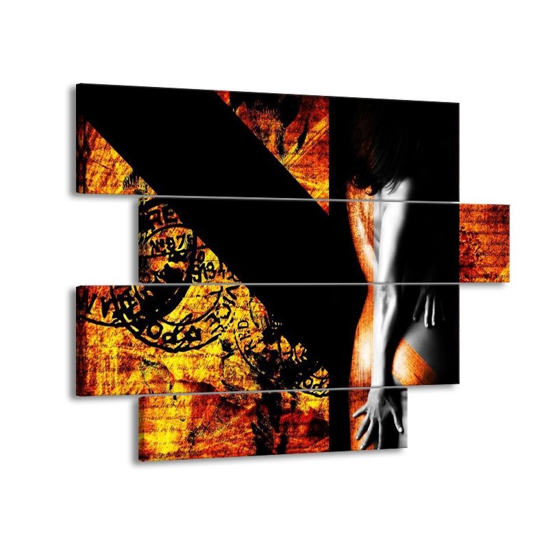 Glas schilderij Lichaam | Geel, Oranje, Zwart | 115x85cm 4Luik