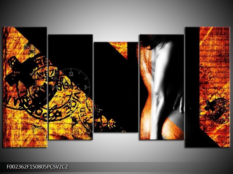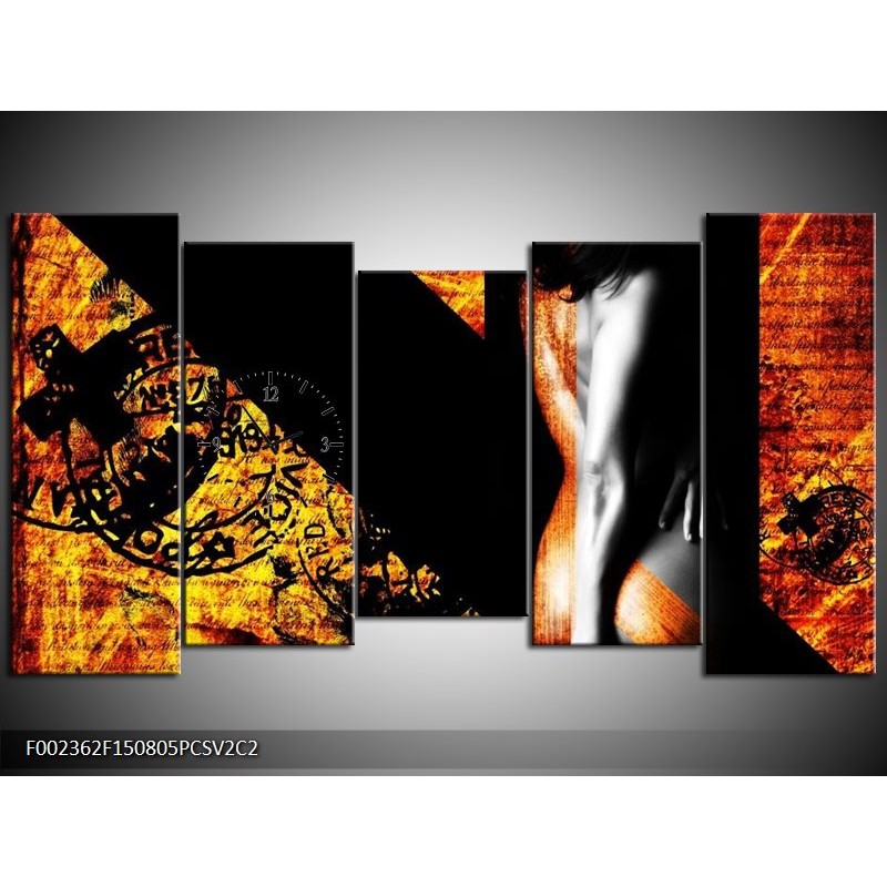 Klok schilderij Lichaam | Geel, Oranje, Zwart | 150x80cm 5Luik