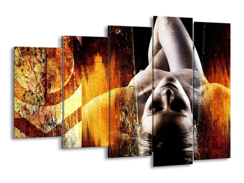 Canvas schilderij Lichaam | Geel, Oranje, Zwart | 150x100cm 5Luik