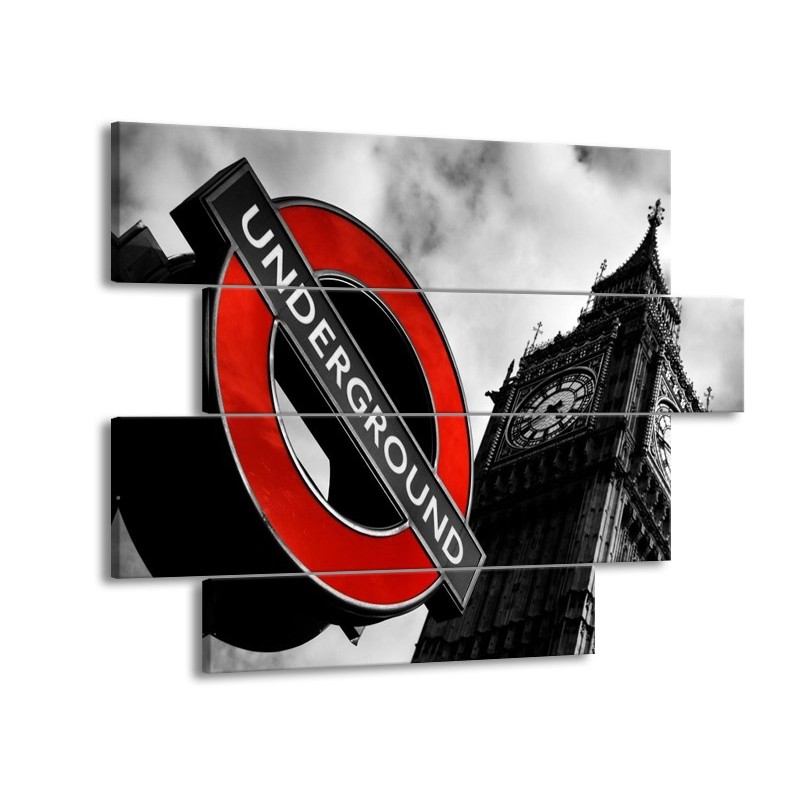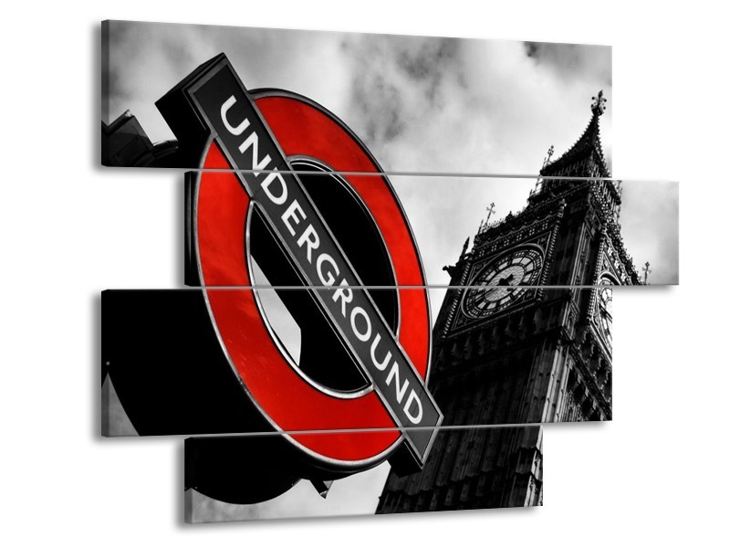 Canvas schilderij Londen | Zwart, Rood, Wit | 115x85cm 4Luik