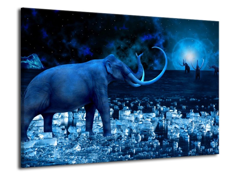 Canvas schilderij Olifant | Blauw, Wit, Zwart | 70x50cm 1Luik