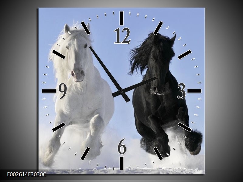 Klok schilderij Paarden | Wit, Zwart, Blauw | 30x30cm 1Luik