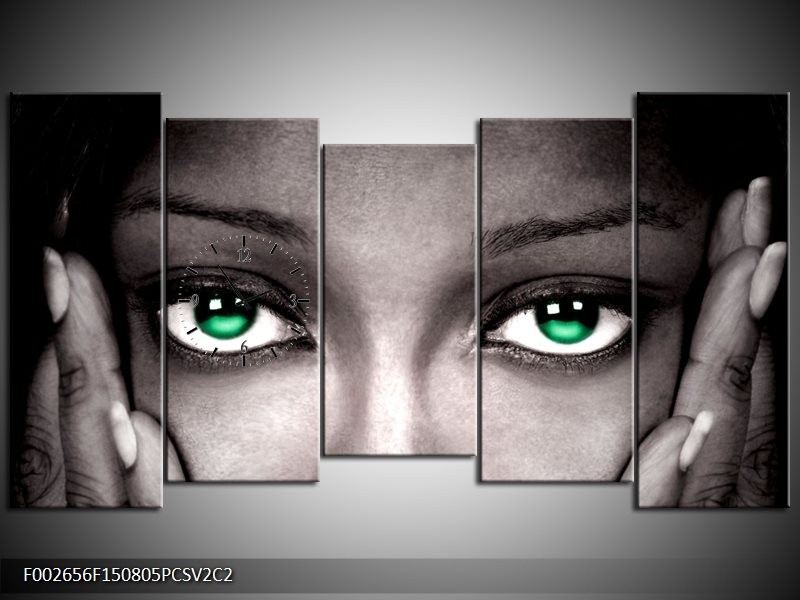 Klok schilderij Ogen | Groen, Zwart, Grijs | 150x80cm 5Luik