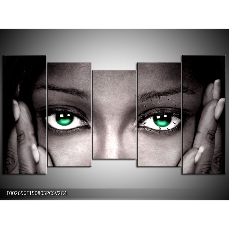 Klok schilderij Ogen | Groen, Zwart, Grijs | 150x80cm 5Luik