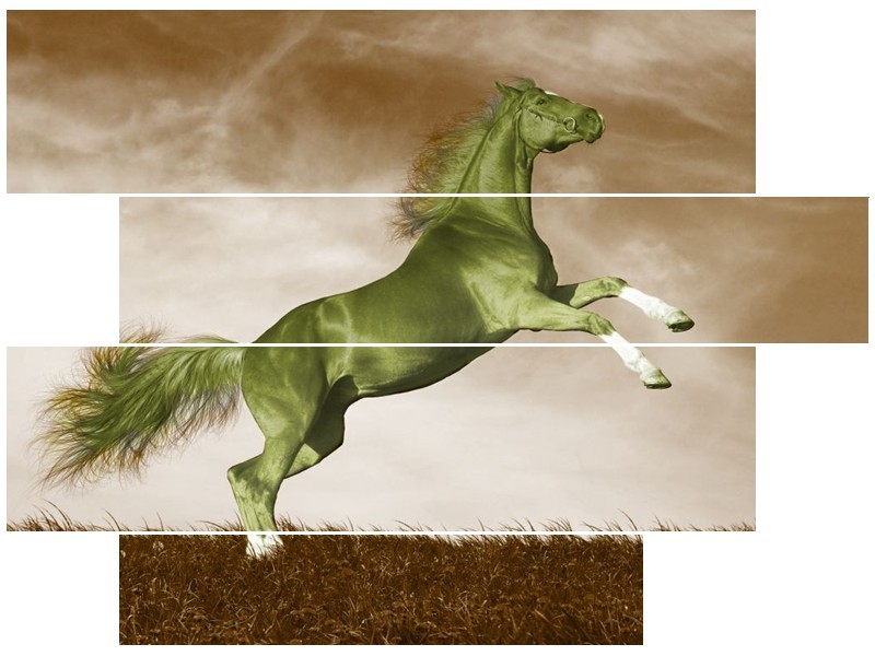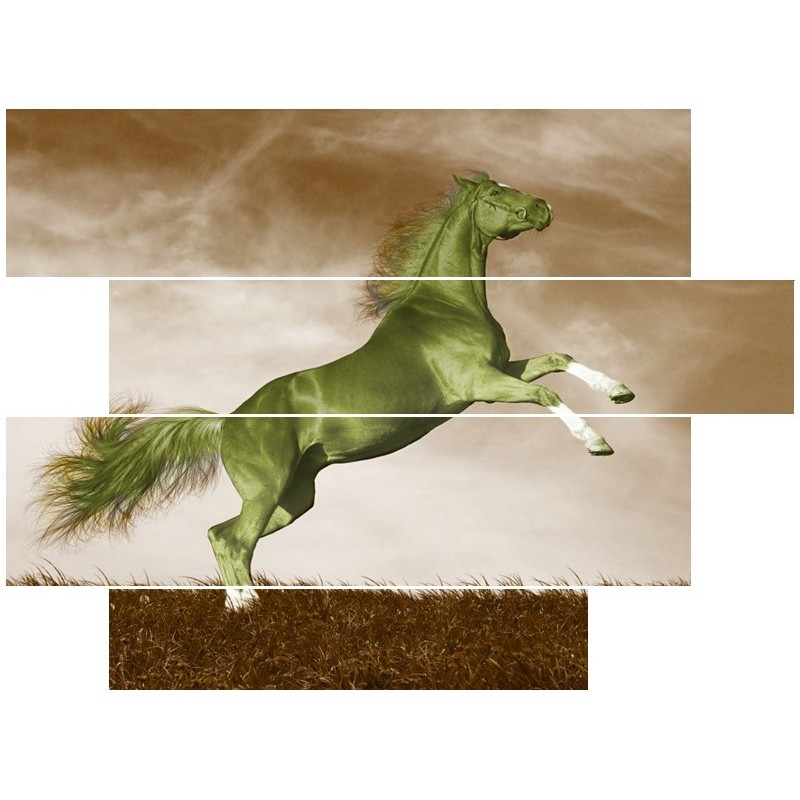 Glas schilderij Paard | Groen, Bruin | 115x85cm 4Luik