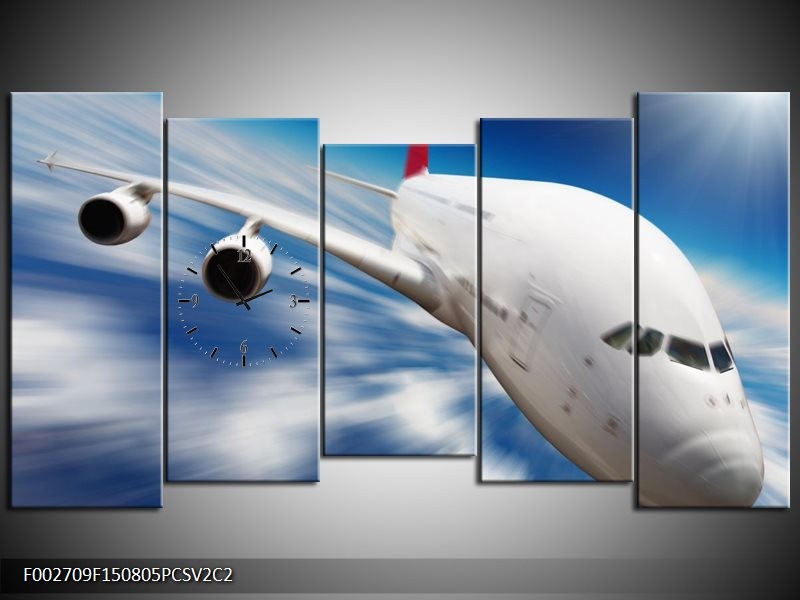 Klok schilderij Vliegtuig | Wit, Blauw, Rood | 150x80cm 5Luik
