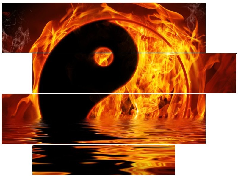 Canvas schilderij Teken | Oranje, Bruin, Zwart | 115x85cm 4Luik