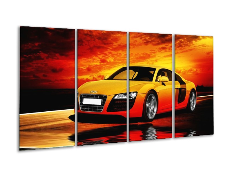 Glas schilderij Audi | Oranje, Zwart, Geel | 160x80cm 4Luik