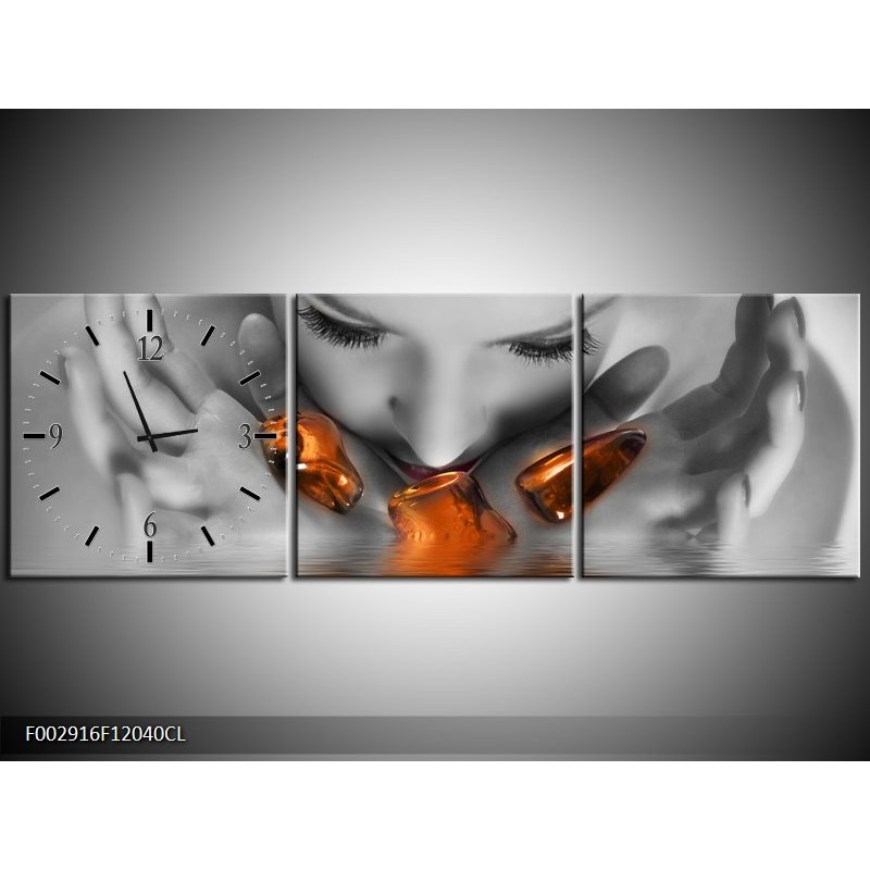 Klok schilderij Gezicht | Oranje, Grijs | 120x40cm 3Luik