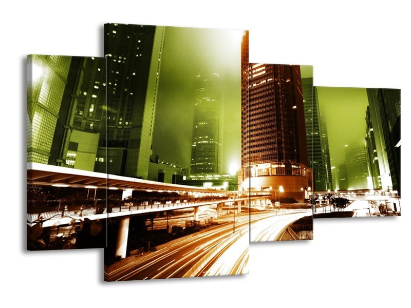 Glas schilderij Steden | Groen, Bruin, Wit | 120x75cm 4Luik