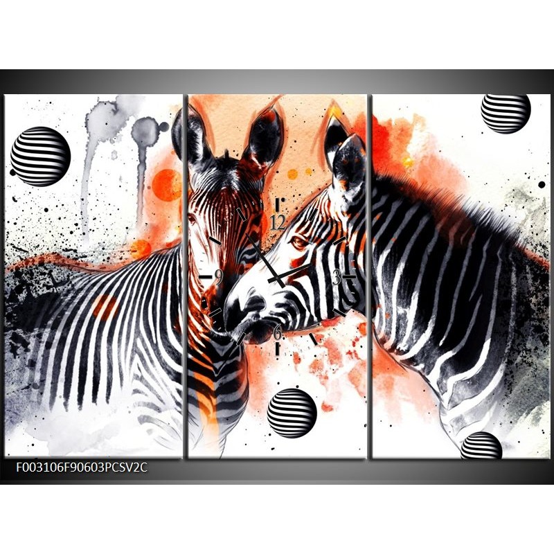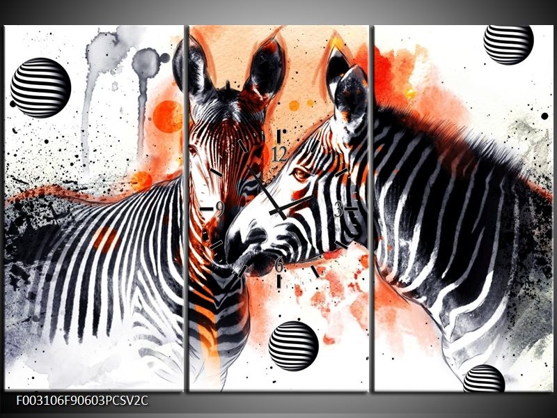 Klok schilderij Zebra | Rood, Zwart, Wit | 90x60cm 3Luik