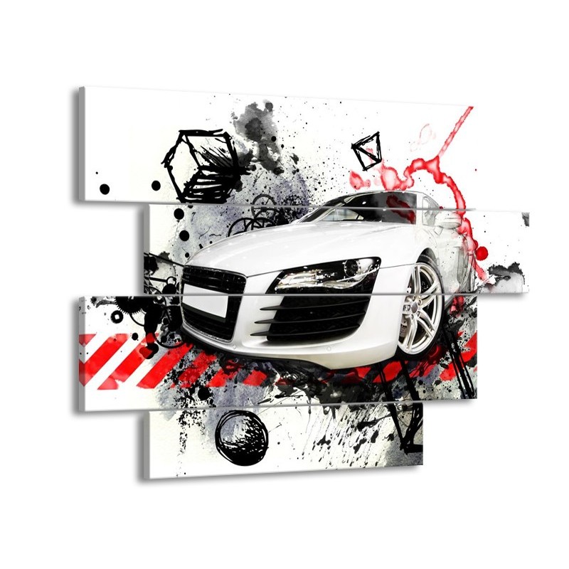 Glas schilderij Audi | Rood, Zwart, Wit | 115x85cm 4Luik