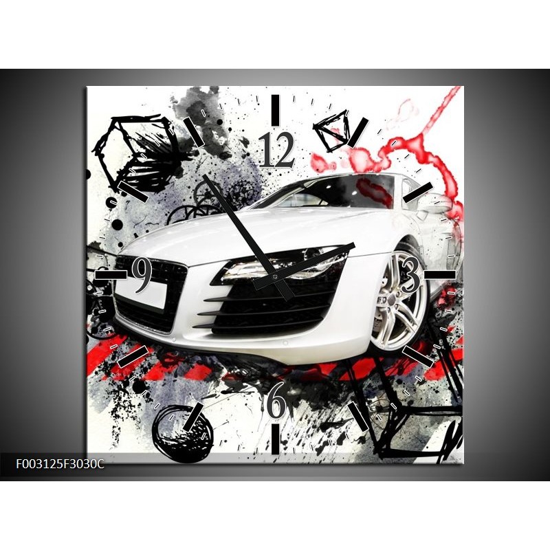 Klok schilderij Audi | Rood, Zwart, Wit | 30x30cm 1Luik