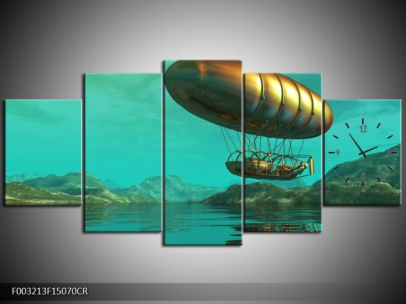Klok schilderij Abstract | Blauw, Groen, Geel | 150x70cm 5Luik