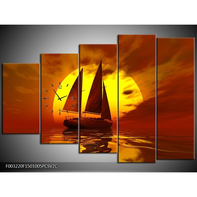 Klok schilderij Zeilboot | Geel, Rood, Bruin | 150x100cm 5Luik