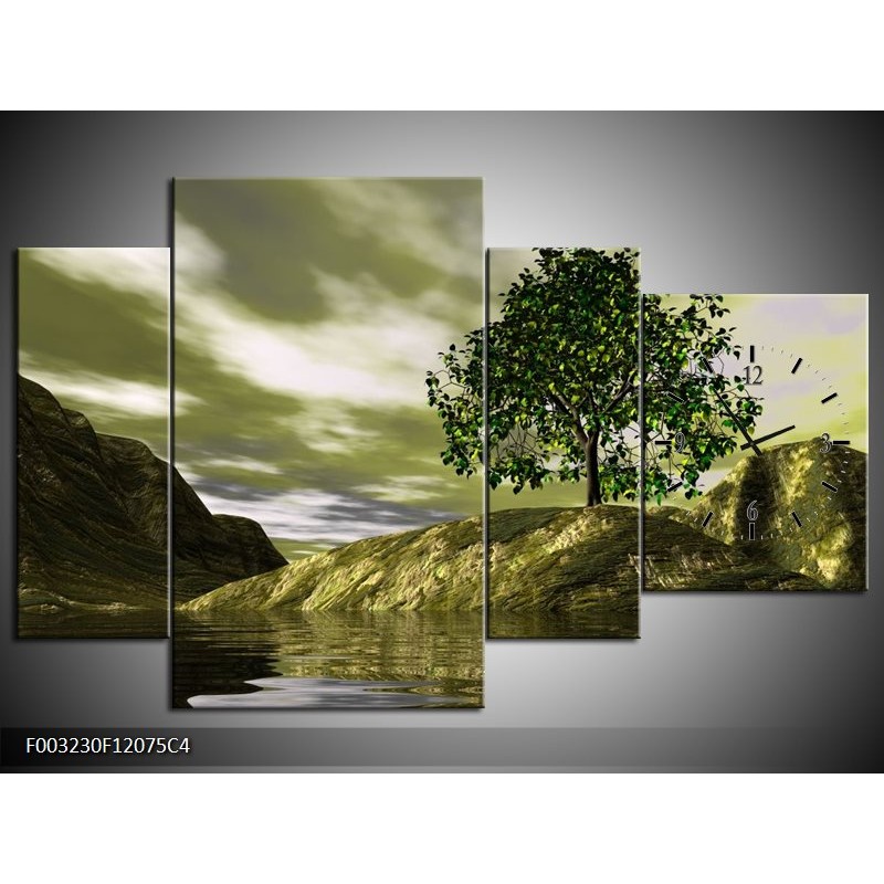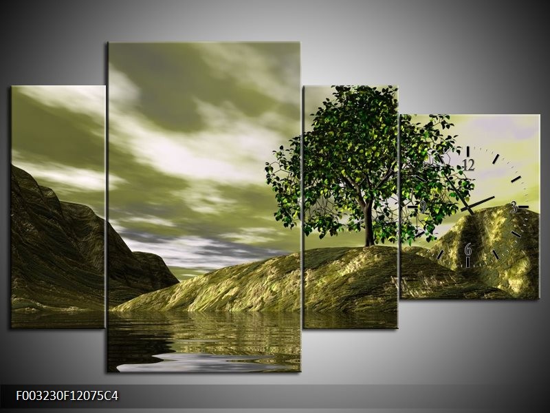 Klok schilderij Natuur | Groen, Grijs, Wit | 120x75cm 4Luik