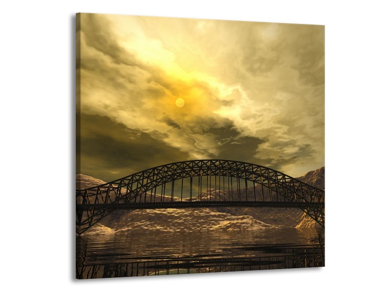 Canvas schilderij Brug | Geel, Bruin, Grijs | 70x70cm 1Luik