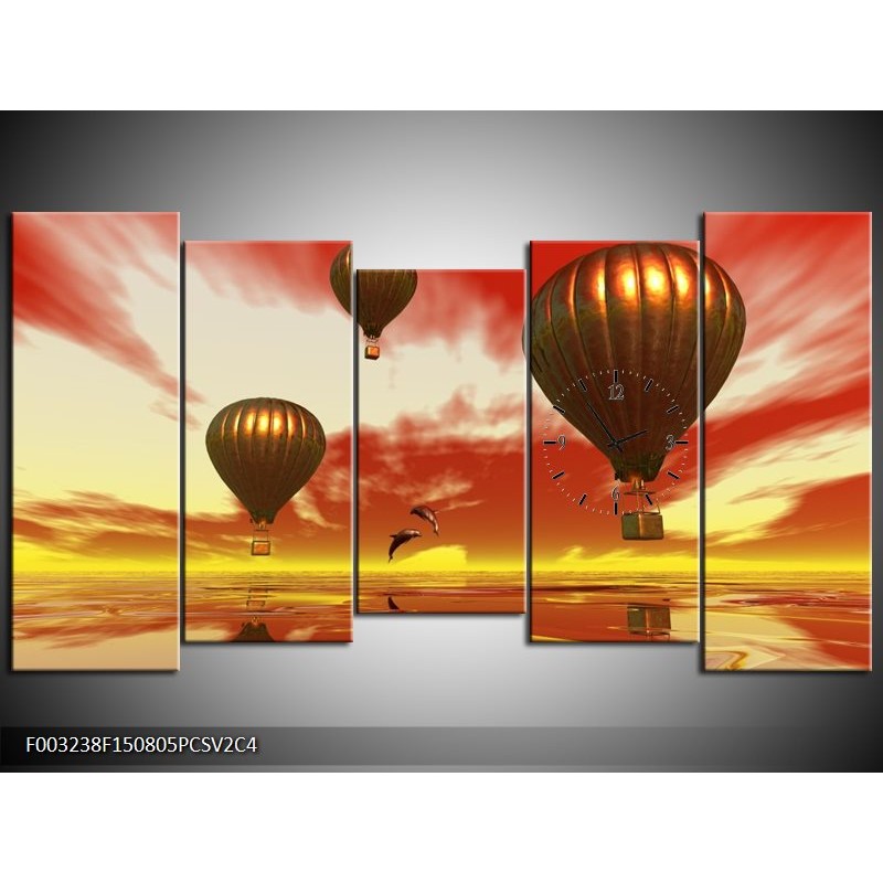 Klok schilderij Luchtballon | Geel, Goud, Rood | 150x80cm 5Luik