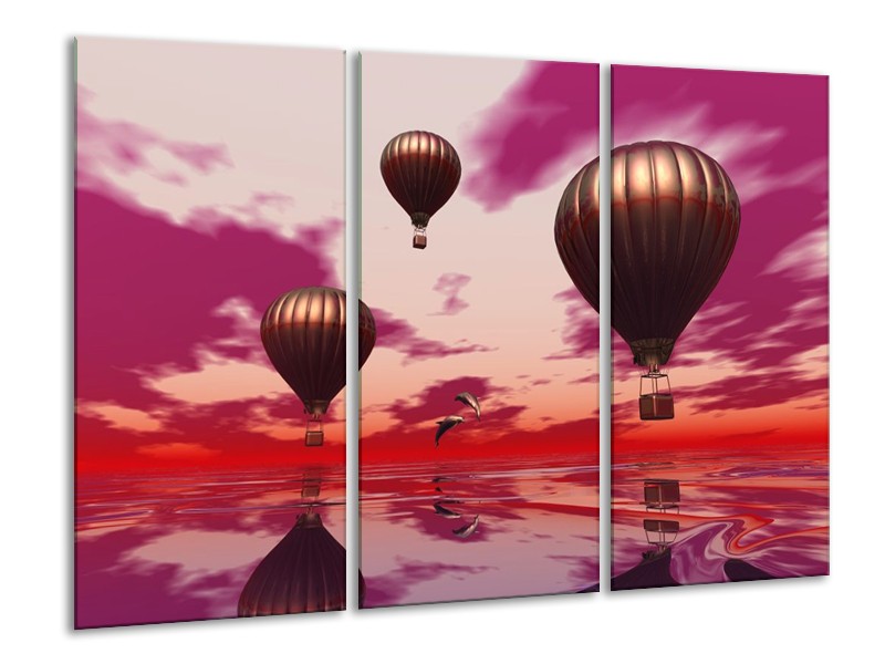 Canvas schilderij Luchtballon | Paars, Rood, Grijs | 120x80cm 3Luik