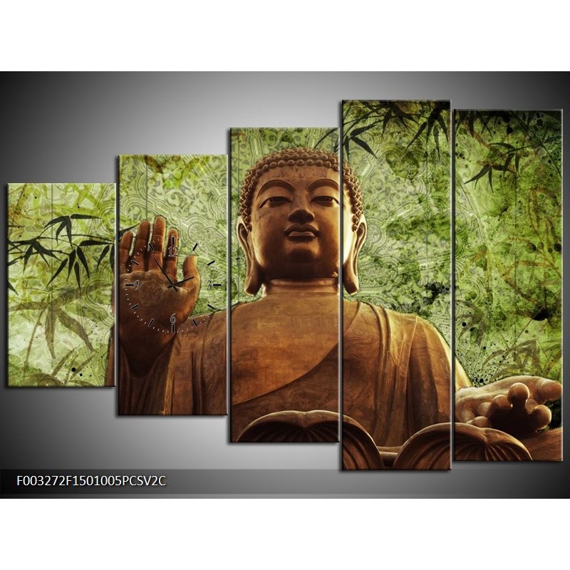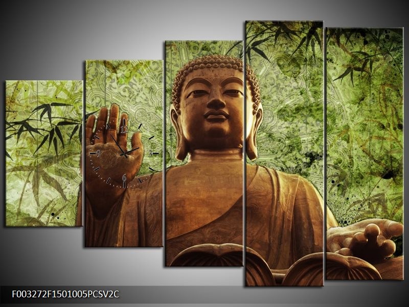 Klok schilderij Boeddha | Groen, Bruin | 150x100cm 5Luik