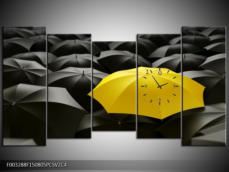 Klok schilderij Paraplu | Geel, Zwart | 150x80cm 5Luik