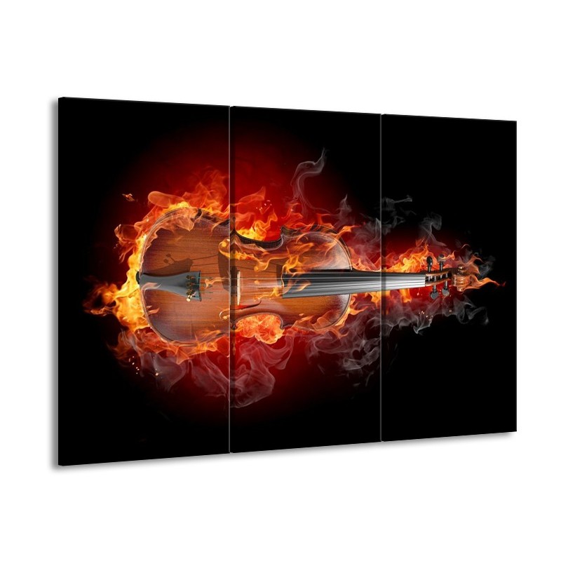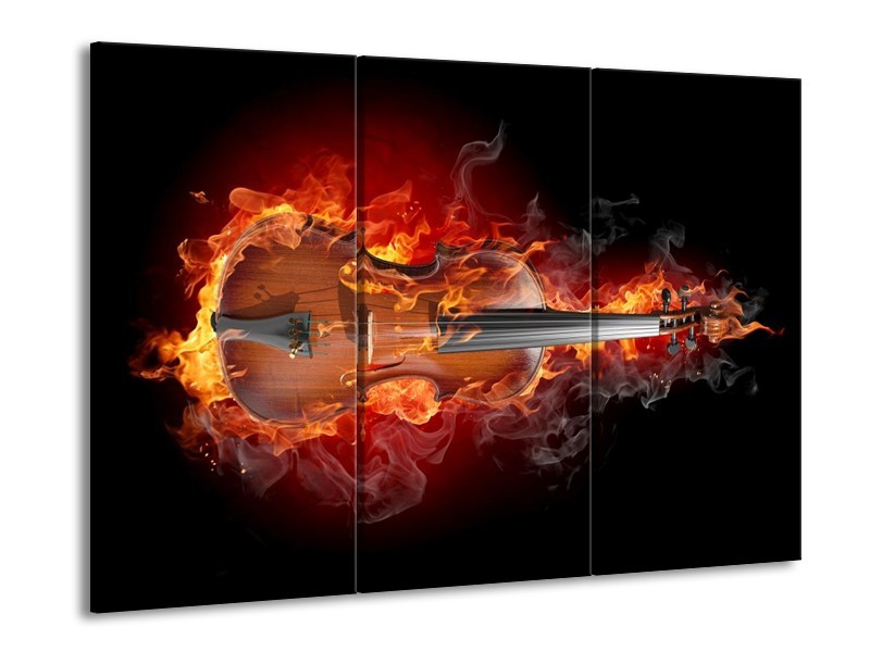 Canvas schilderij Gitaar | Rood, Zwart, Geel | 90x60cm 3Luik