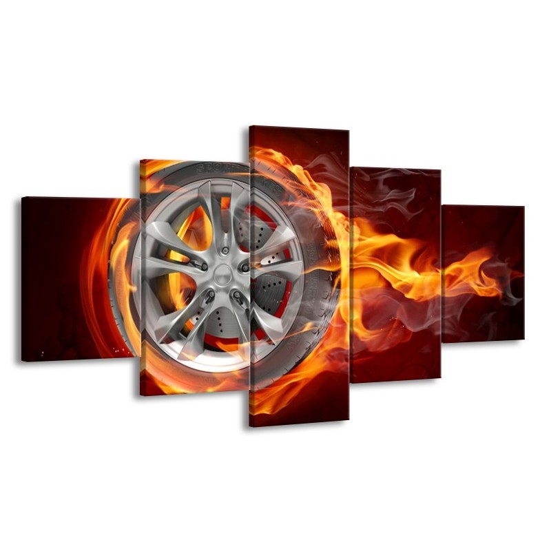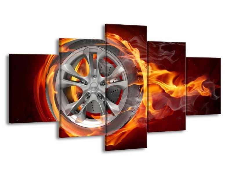 Canvas schilderij Wiel | Rood, Zwart, Geel | 150x80cm 5Luik