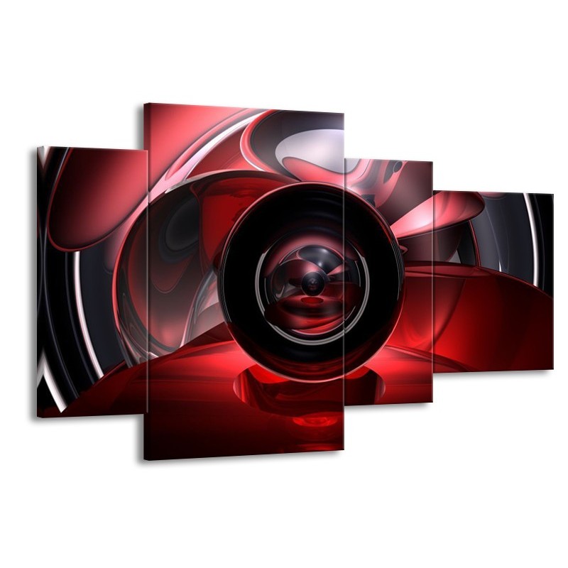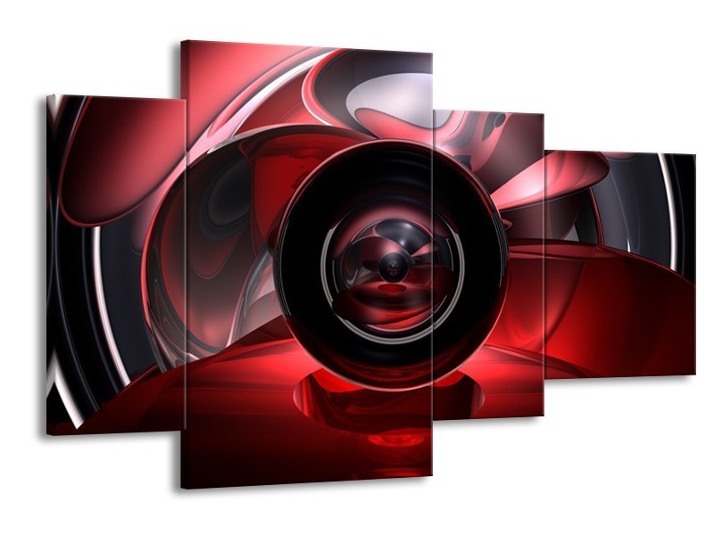 Glas schilderij Abstract | Rood, Zwart, Wit | 120x75cm 4Luik