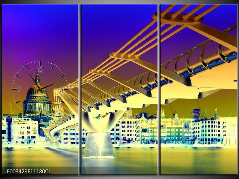 Klok schilderij Brug | Geel, Blauw, Paars | 111x80cm 3Luik