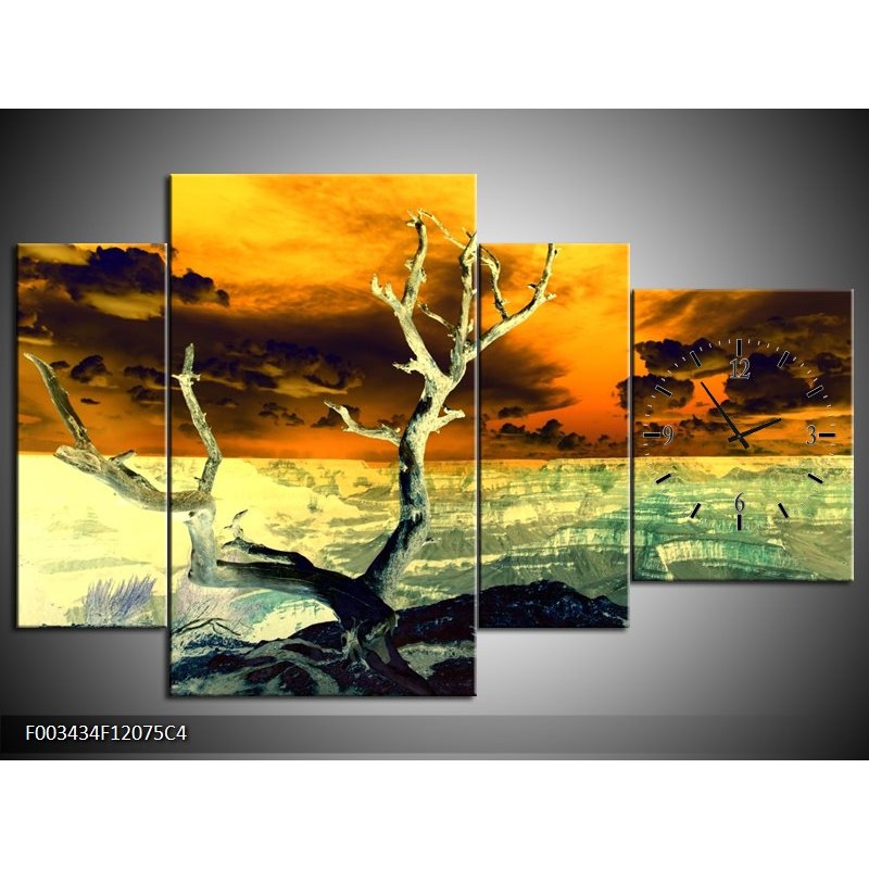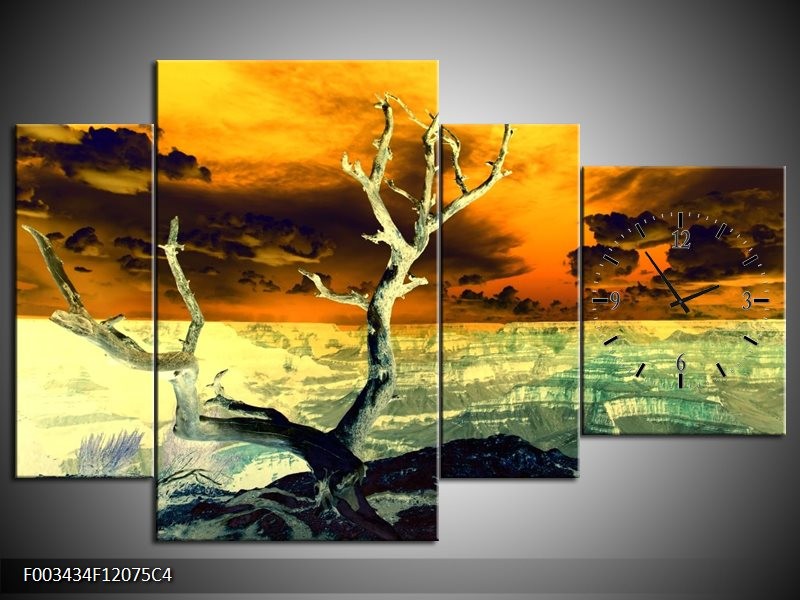 Klok schilderij Natuur | Geel, Bruin, Wit | 120x75cm 4Luik