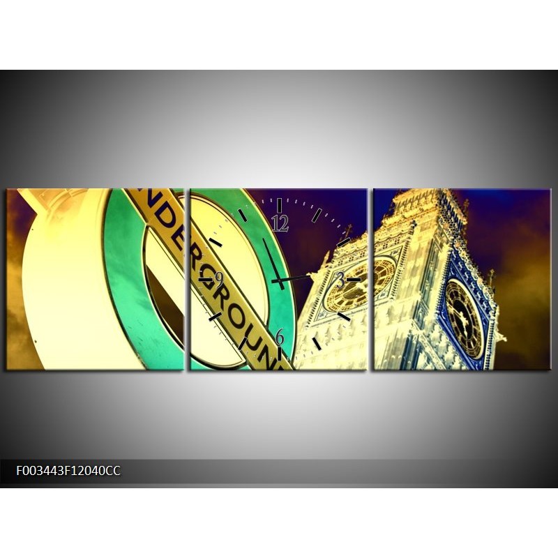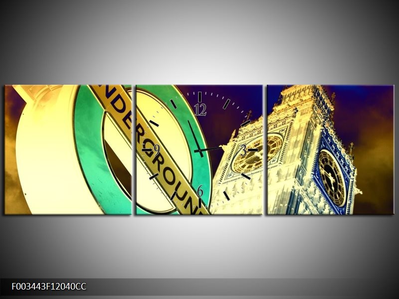 Klok schilderij Londen | Geel, Blauw, Groen | 120x40cm 3Luik