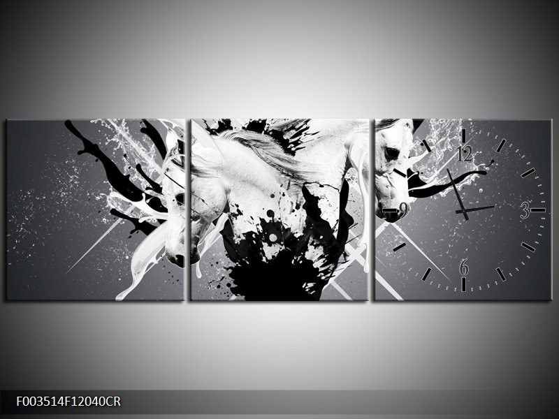 Klok schilderij Abstract | Wit, Zwart, Grijs | 120x40cm 3Luik