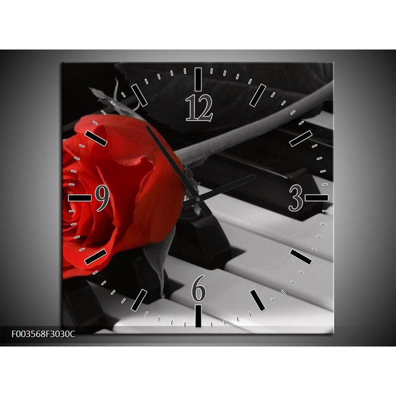 Klok schilderij Roos | Rood, Wit, Zwart | 30x30cm 1Luik