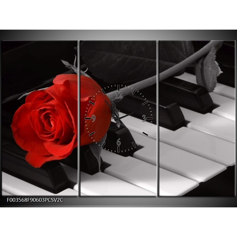 Klok schilderij Roos | Rood, Wit, Zwart | 90x60cm 3Luik