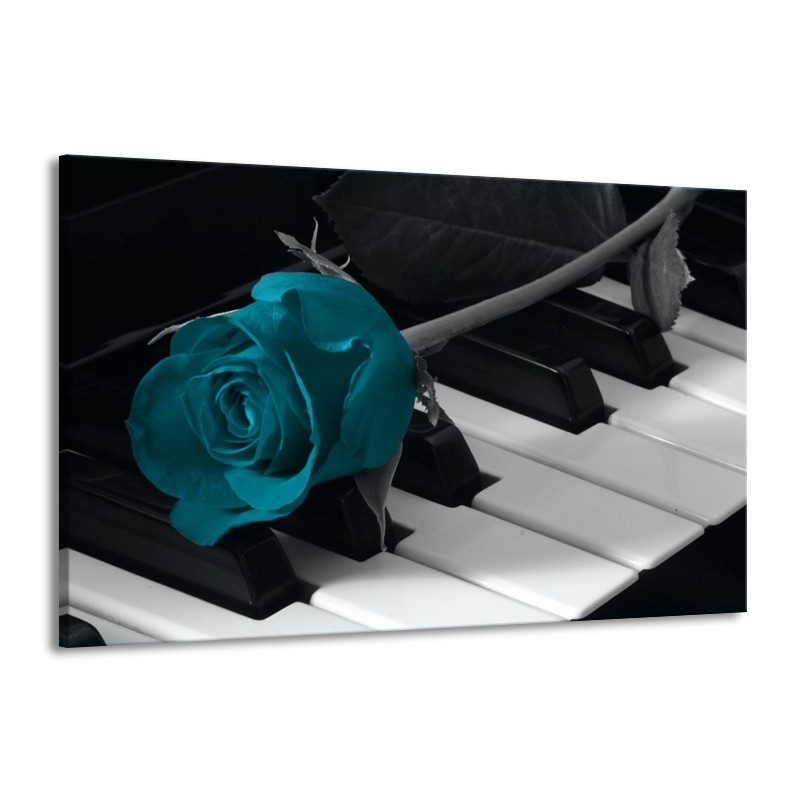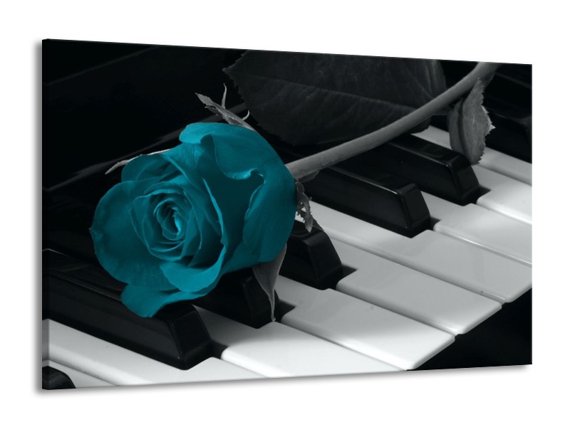 Glas schilderij Roos | Blauw, Zwart, Wit | 140x90cm 1Luik