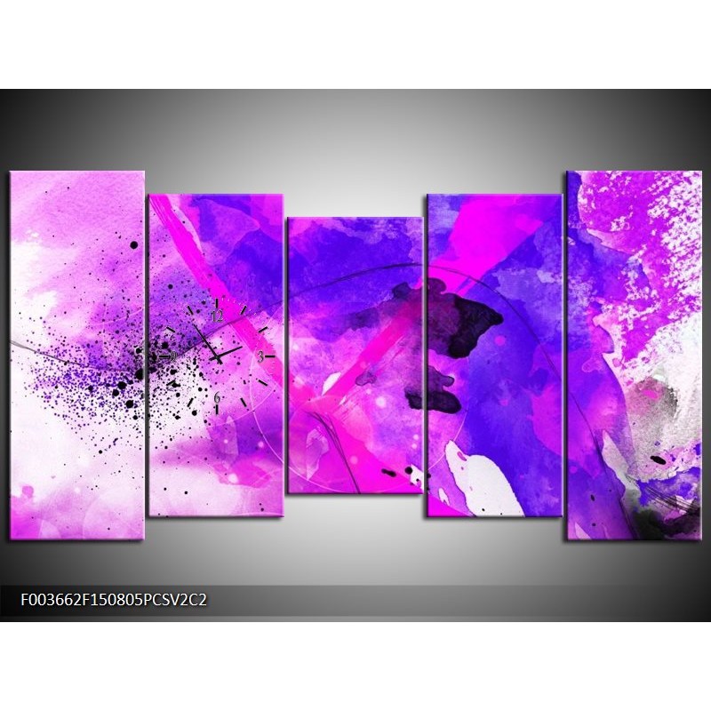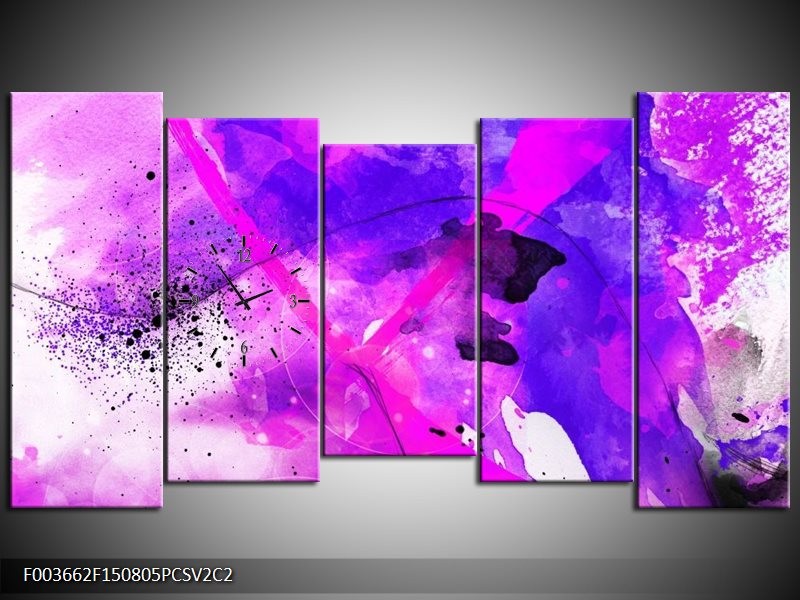 Klok schilderij Abstract | Paars, Roze, Wit | 150x80cm 5Luik