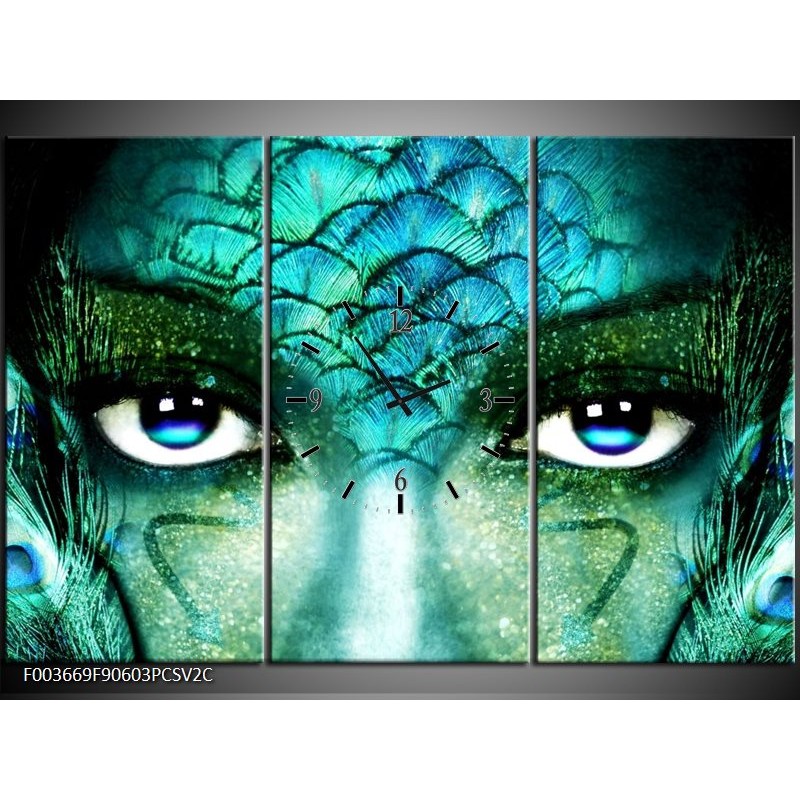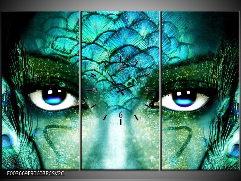 Klok schilderij Gezicht | Blauw, Wit, Zwart | 90x60cm 3Luik