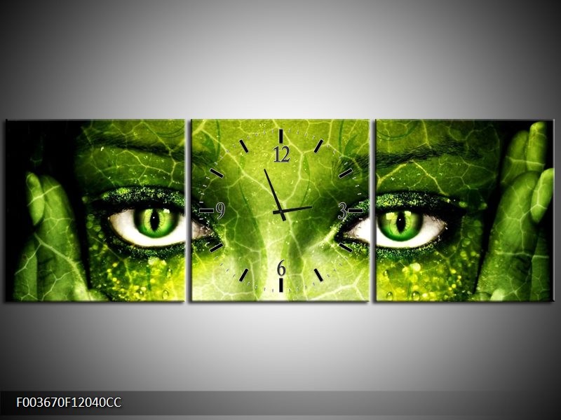 Klok schilderij Gezicht | Groen, Wit, Zwart | 120x40cm 3Luik