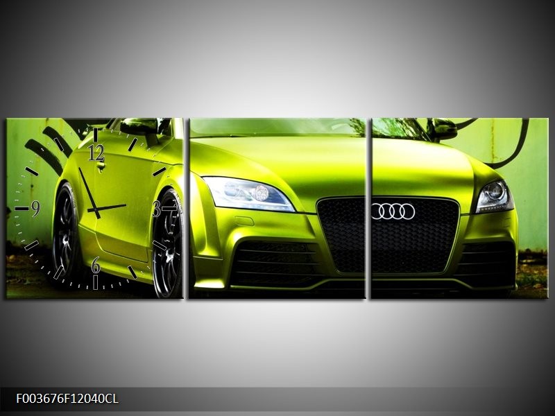 Klok schilderij Audi | Groen, Zwart | 120x40cm 3Luik