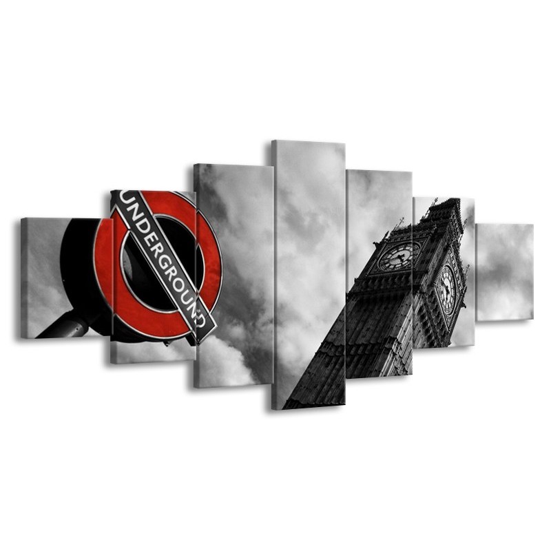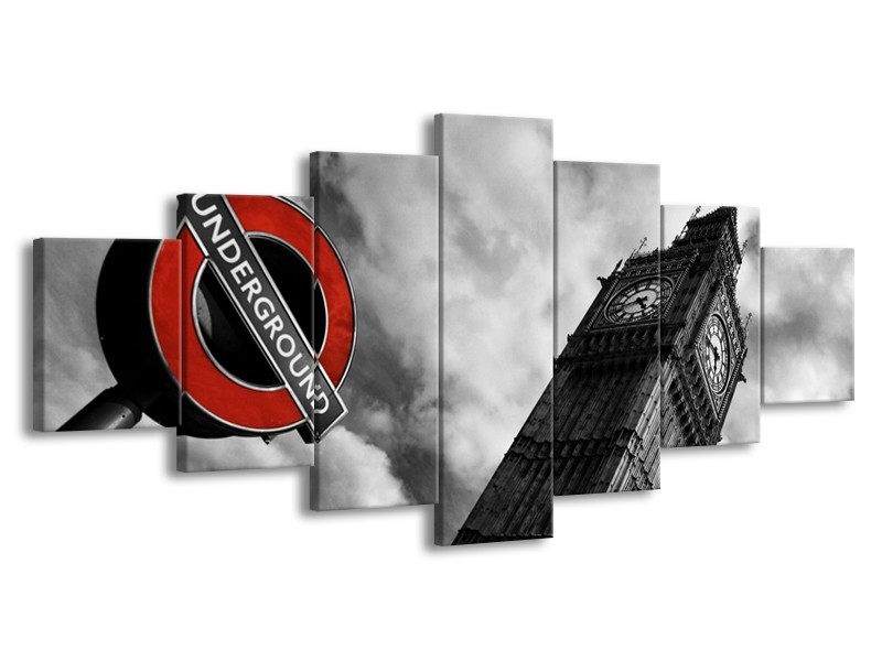 Canvas schilderij Londen | Grijs, Zwart, Rood | 210x100cm 7Luik