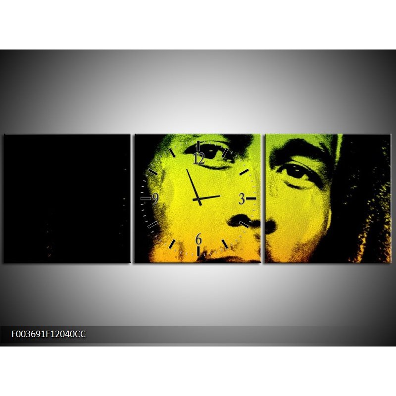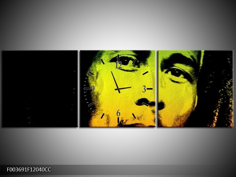 Klok schilderij Man | Groen, Zwart, Oranje | 120x40cm 3Luik