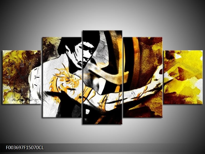 Klok schilderij Sport | Geel, Grijs, Zwart | 150x70cm 5Luik
