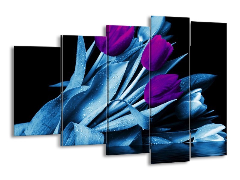 Glas schilderij Tulp | Paars, Blauw, Zwart | 150x100cm 5Luik