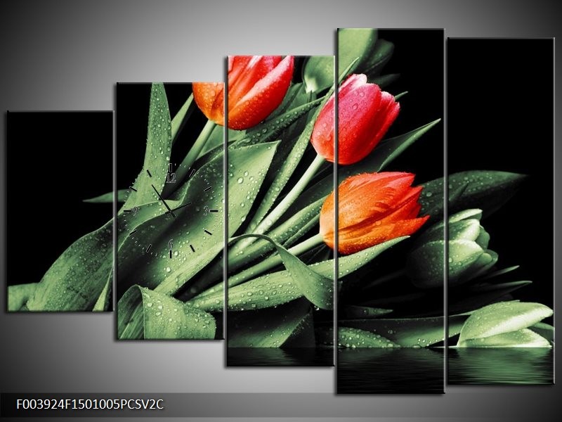 Klok schilderij Tulp | Rood, Oranje, Groen | 150x100cm 5Luik