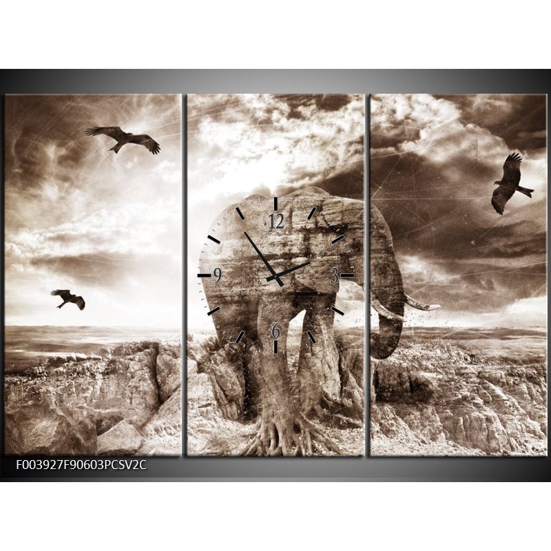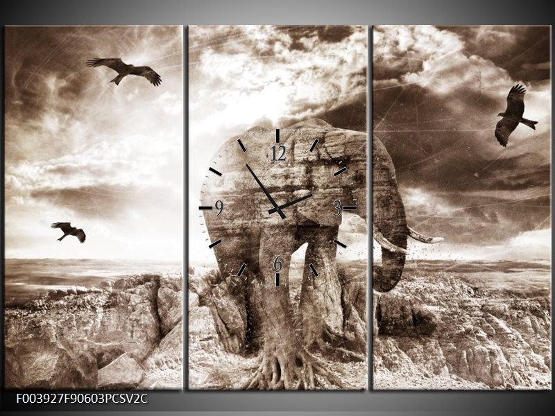 Klok schilderij Olifant | Grijs, Wit | 90x60cm 3Luik