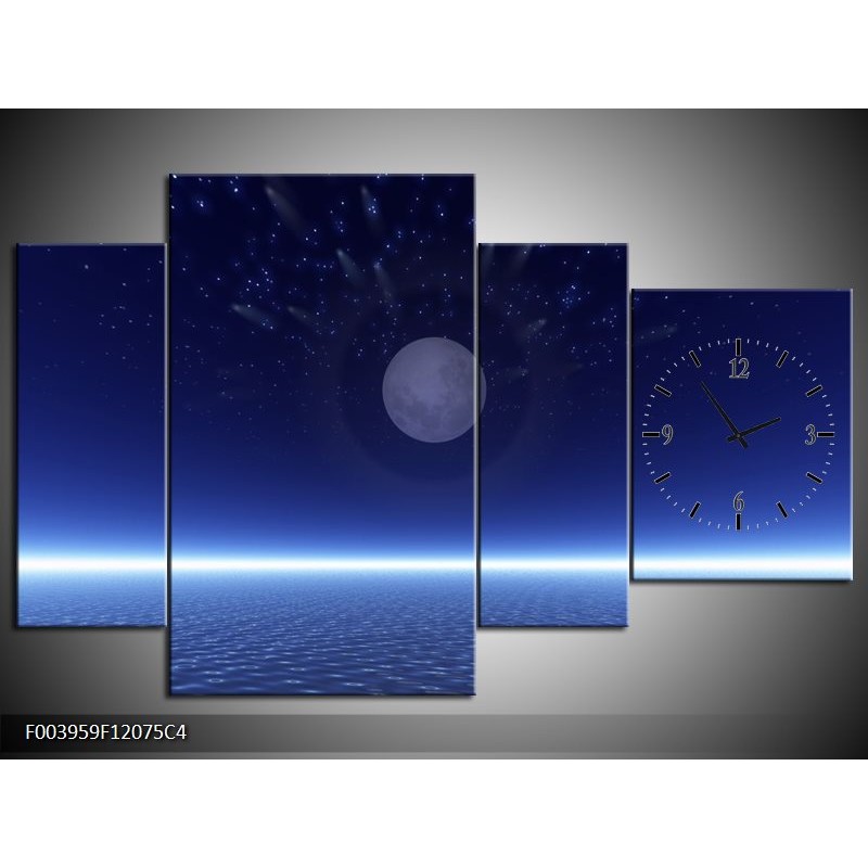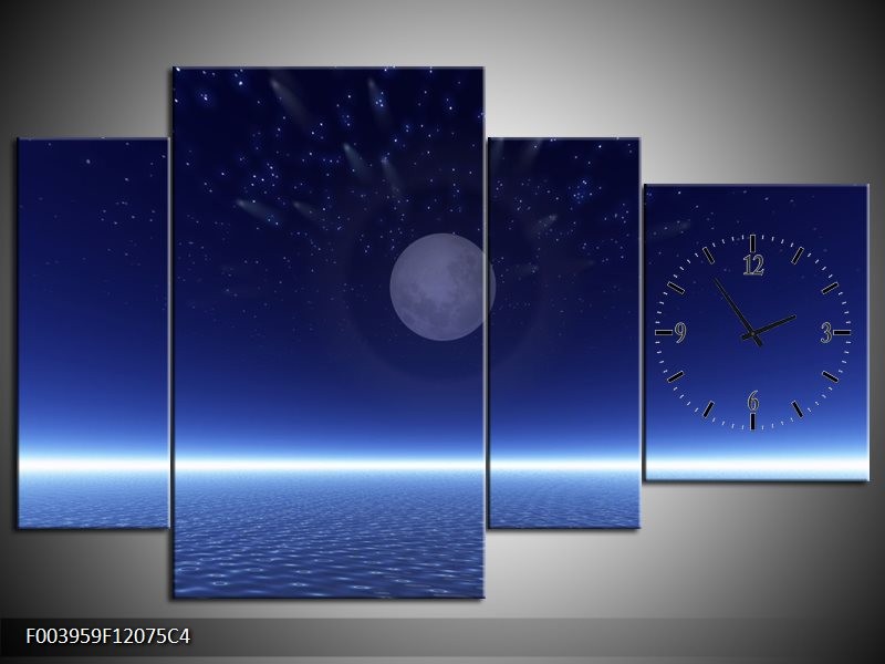 Klok schilderij Maan | Blauw, Wit, Grijs | 120x75cm 4Luik