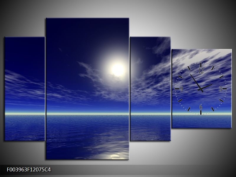 Klok schilderij Zee | Blauw, Wit | 120x75cm 4Luik